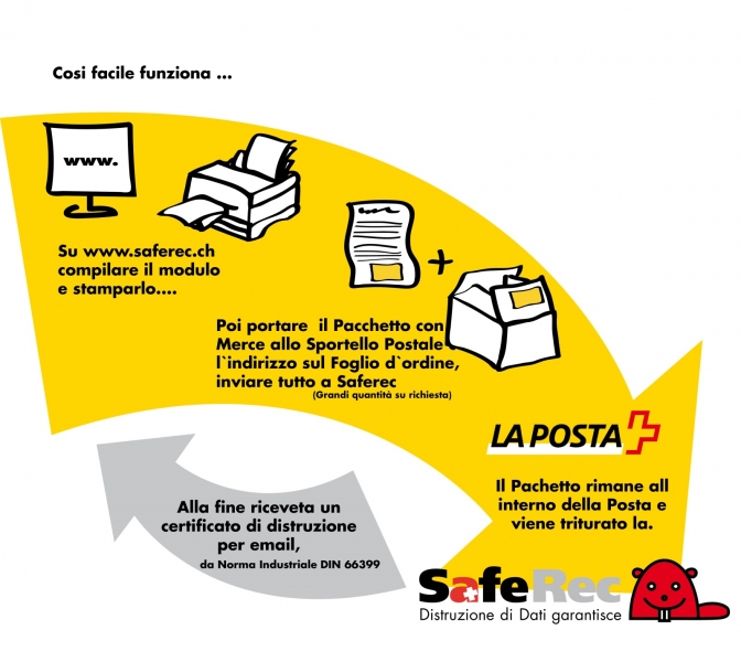 Nel nostro systema sono allegati segueti Partner.Questi sono autorizzati, a prendere in consegna il vostro prodotto di entrare sul nostro sito per assumere lavori di administarzione, e inviano il vostro prodotto a SafeRec. Avete la stessa sicurezza e riceverete diretti da SafeRec il Certificato di Distruzione via E-Mail.