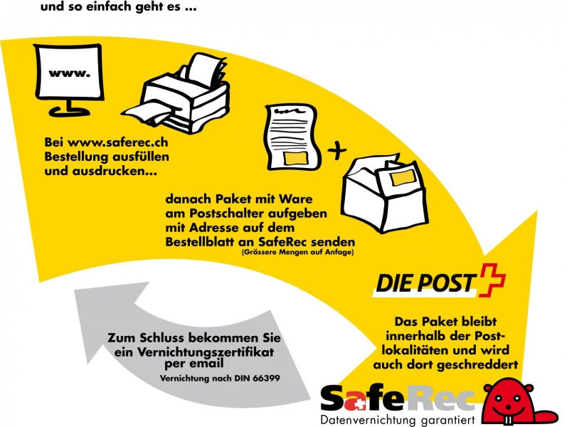 In unserem System sind folgende Partner angeschlossen.Diese sind autorisiert, ihre Datenträger anzunehmen und logen sich dann direkt auf dieser Homepage ein und übernehmen einen gewissen administrativen Aufwand und senden dies dann direkt an SafeRec. Sie haben somit die selbe Sicherheit und erhalten direkt von SafeRec das Vernichtungszertifikat per E-Mail.